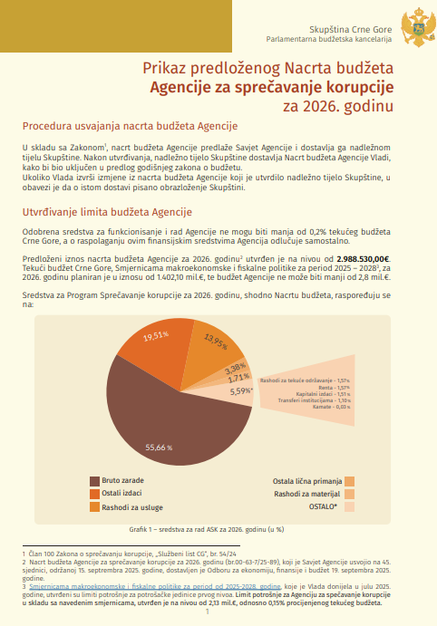 Prikaz predloženog Nacrta budžeta Agencije za sprečavanje korupcije za 2026. godinu