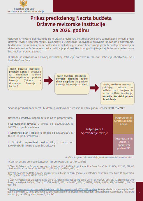 Prikaz predloženog Nacrta budžeta Državne revizorske institucije za 2026. godinu